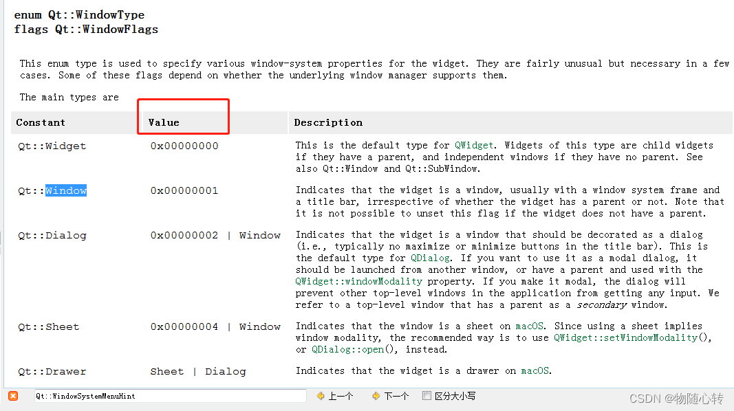 #include "widget.h"#include <QApplication>#include<QtWidgets>int main(int argc, char *argv[]){QApplication a(argc,argv);QWidget w(0,Qt::Widget//默认窗口类型// | Qt::FramelessWindowHint//没有边框的窗口// | Qt::WindowStaysOnTopHint //总在最上面的窗口// | Qt::CustomizeWindowHint //自定义窗口标题栏,// | Qt::WindowTitleHint //显示窗口标题栏// | Qt::WindowSystemMenuHint //显示系统菜单// | Qt::WindowMinimizeButtonHint //显示最小化按钮// | Qt::WindowMaximizeButtonHint //显示最大化按钮// | Qt::WindowMinMaxButtonsHint //显示最小化按钮和最大化按钮// | Qt::WindowCloseButtonHint //显示关闭按钮);w.setWindowTitle(QObject::tr("我的第一个QT程序"));w.show();return a.exec();}