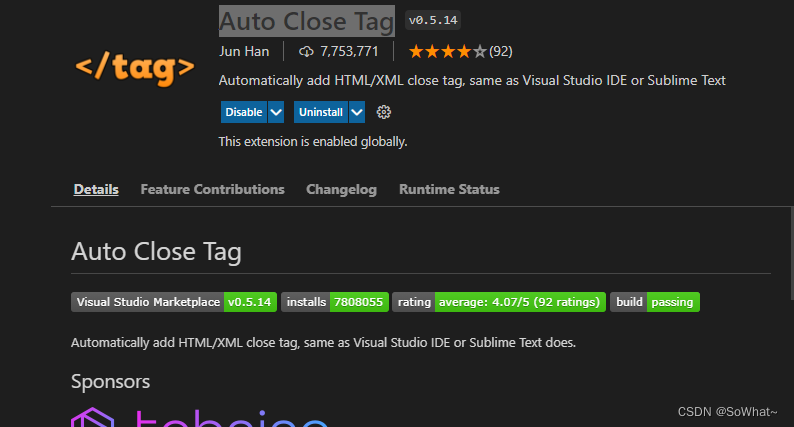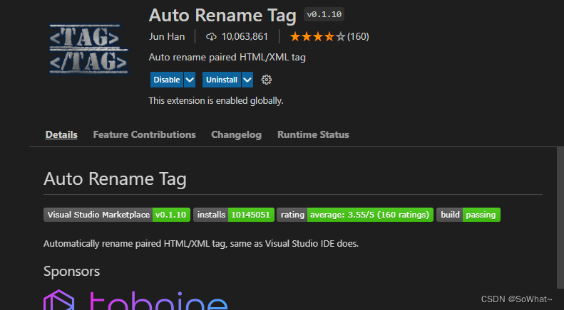 修改了前面的开始标签,自动remane 后面的闭合标签