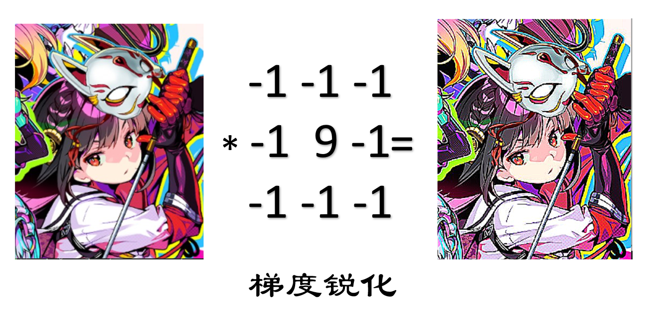 注意一下,中间值为8就是边缘检测,为9就是原图的图像锐化