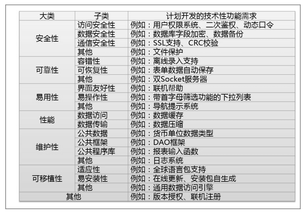 这一节其实想表达的是功能特性与非功能特性的区分不够好。什么叫非功能特性?有 人也称之为质量特性。笔者觉得一切都是质量,所以在商业需求呈现过程中一定要区分下 面两条需求的意义其实不大。