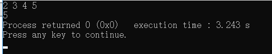 同样的输入2 3 4 5 多点测试会输出两个和5 9,这是由while(scanf("%d%d",&a,&b)!=EOF)这行代码来决定的。