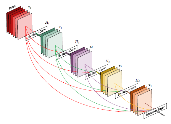 由于每一层的输出都传递到了后面的每一层,所以Dense connection能够有效的减轻梯度消失现象;