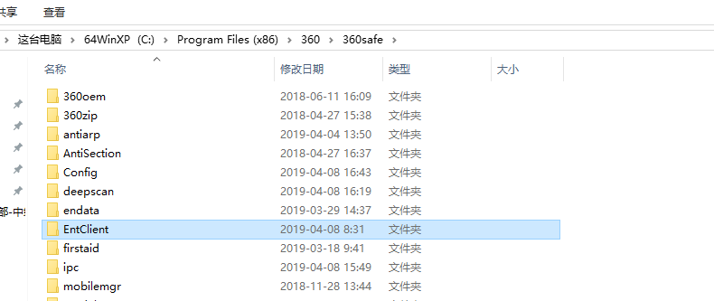 找到360安全卫士的安装路径,默认安装在“C:\Program Files\360\360Safe”中,查找含有ent的文件。