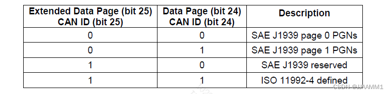 DP与EDP结合使用,以确定CAN数据帧的CAN ID结构。当EDP设置为零时,DP在PGN描述的第0页和第1页之间进行选择。