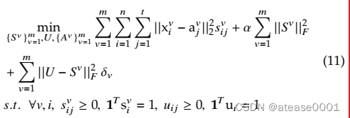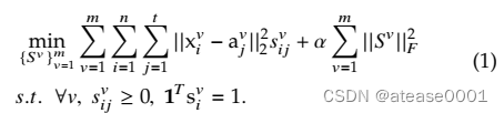 目标函数总体可分为两部分:(1)S的自适应学习;(2)最小化S^v和整体的anchor graph之间的差距。