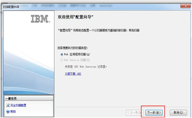 3.进入配置向导页面,选择Web应用程序扫描,点击“下一步”