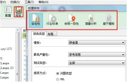 13.点击“报告”,创建不同要求的安全报告