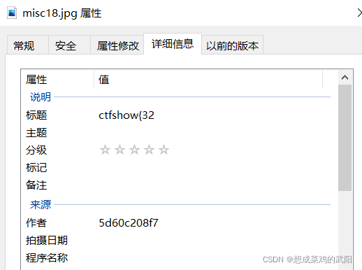 第十八题:提示flag在标题、作者、照相机和镜头型号里 鼠标右键 属性