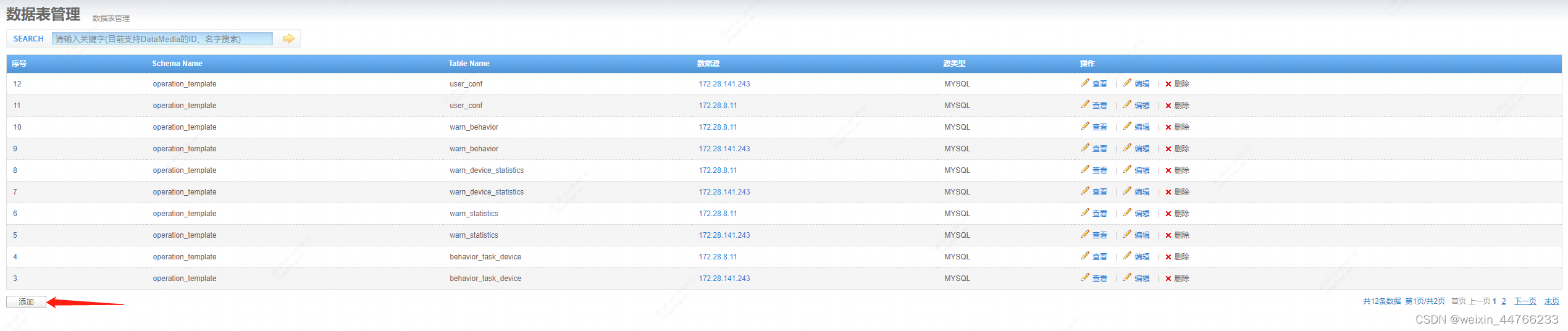 2.2.2 添加数据表库名称,表名称,点击查找数据(添加数据源)