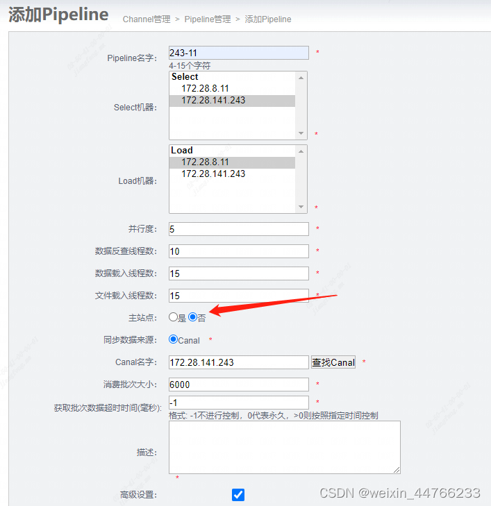 例如1.从172.28.8.11到172.28.141.234方向pipeline (a) 2.从172.28.141.234到172.28.8.11方向的pipeline (b) 3.其中pipeline a和b一个要做主站点,一个要做从站点 流程如下