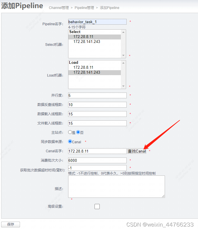 4.查找Canal 点击选择,跳回天剑pipeline页面