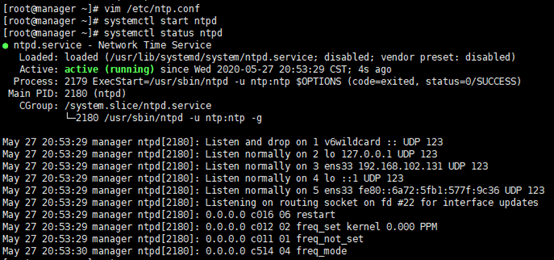 与主节点同步时间:ntpdate manager