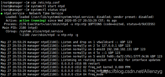 查看状态:systemctl status ntpd