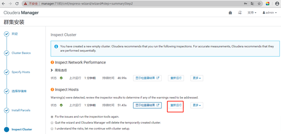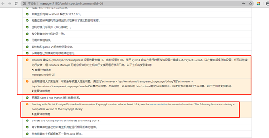 1. Cloudera 建议将 /proc/sys/vm/swappiness 设置为 10。当前设置为 30。使用 sysctl 命令在运行时更改该设置并编辑 /etc/sysctl.conf 以在重启后保存该设置。您可以继续进行安装,但可能会遇到问题,Cloudera Manager 报告您的主机由于交换运行状况不佳。以下主机受到影响: