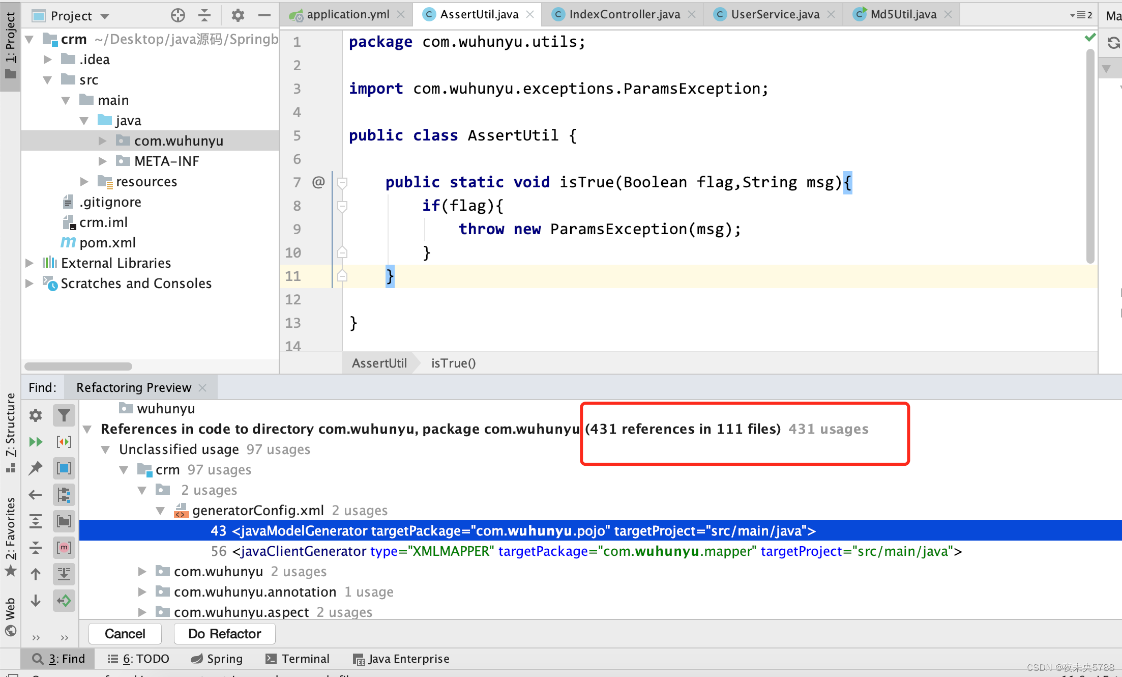 1.打开项目,我们可以看到原项目的包名是用自己的名字命名的,像这种不改不行,要不然老师一看就漏陷了。