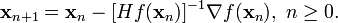 上面讨论的是2维情况,高维情况的牛顿迭代公式是: