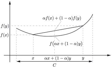 对于函数f(x),如果其定义域C是凸的,且对于∀x,y∈C,,