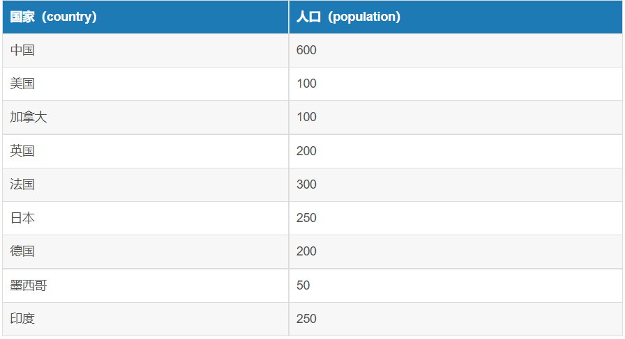 - 有如下数据:(为了看得更清楚,我并没有使用国家代码,而是直接用国家名作为Primary Key)