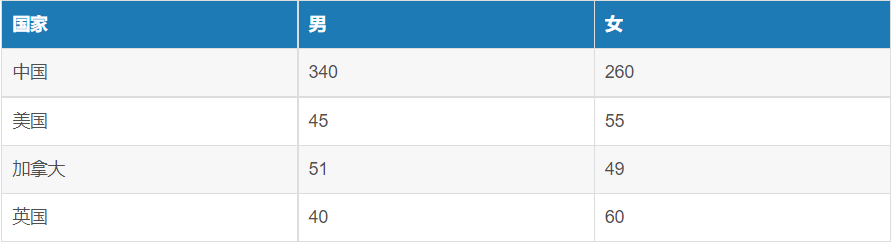 - 按照国家和性别进行分组,得出结果如下