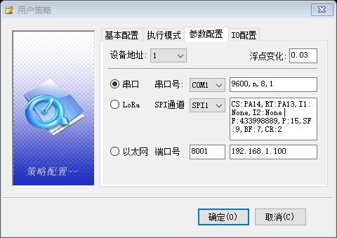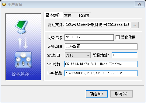 我们可以打开刚刚配置的串口类型“叶帆IO服务”,把串口修改为“LoRa”,配置可以设置为默认,SPI接口根据网关类型进行配置。