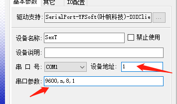 设备地址和串口参数要和“叶帆IO服务”的配置一样。