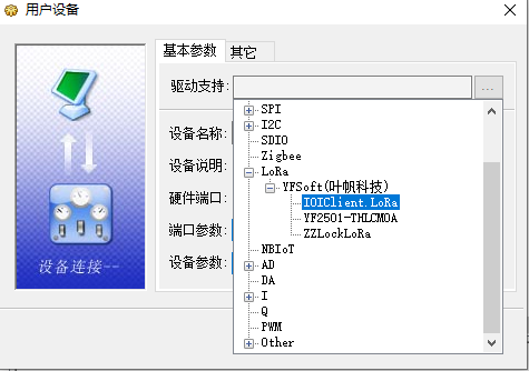 由于是通过RS485进行直连,所以选择“串口”选项。YF3300的RS485接口是“COM2”,配置参数默认为“9600,n,8,1”也可以根据需要进行修改。