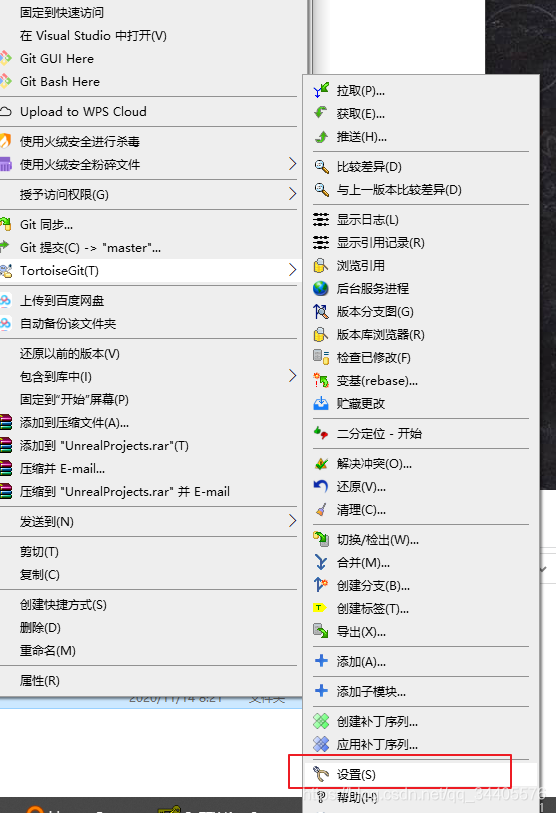 8.选择乌龟(TortoiseGit)设置,要右键克隆到本地的项目文件夹,这样就能出现对应用户的远端配置