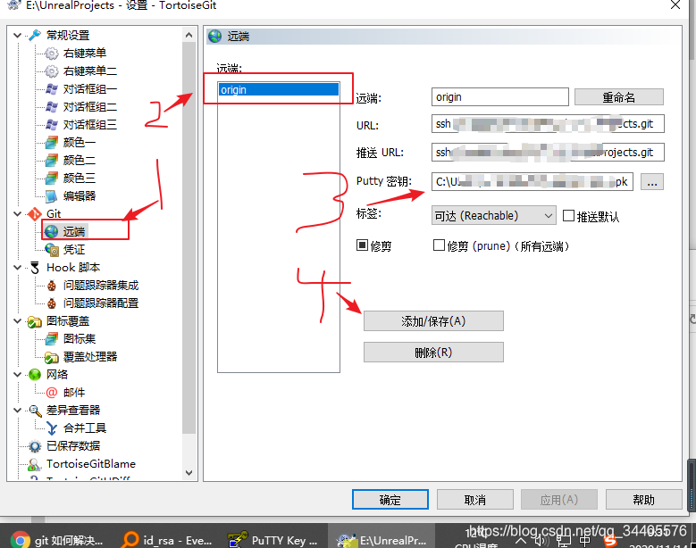 9.然后按步骤,远端》选中要用的添加的远端》添加密钥》保存