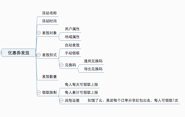 优惠券的方法简单理解为,就是将券发放给什么样的人?详细一点就是:将优惠券在什么时间内?用什么样的方式?发给什么人?每个人发多少?我们可以将这个优惠券的发放过程理解为一个活动。