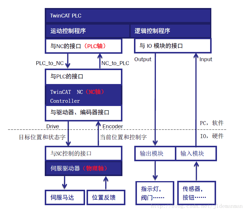 TwinCAT包含三层结构:PLC轴、NC轴和物理轴。
