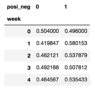 以下图当中表示,week代表星期几,1、0代表这一天股票的涨跌幅是好还是坏,里面的数据代表比例