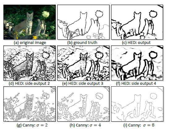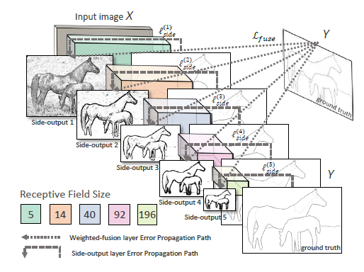 Holistically:指端到端(end-to-end 或者image-to-image)的学习方式,也就是说,网络的输入为原图,输出为边缘检测得到的二值化图像。
