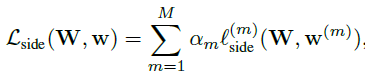 公式参数说明:M--Side output层数 W—相应vggnet卷积核参数 w—每层side output卷积核的参数