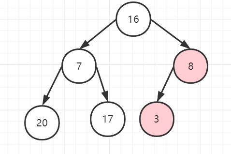 二:8是3的左孩子 父亲(parent)没有左孩子(lChild)大所以二者进行交换,