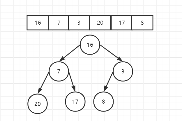 一:将无序的数组画出来一个二叉树,开始构建大顶堆