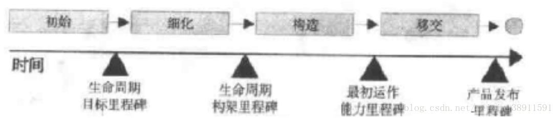 迭代过程一般分为四个阶段:初始、细化、构造和移交,简称为I,E,C和T。每个阶段以一个重要的里程碑(milestone)结束。