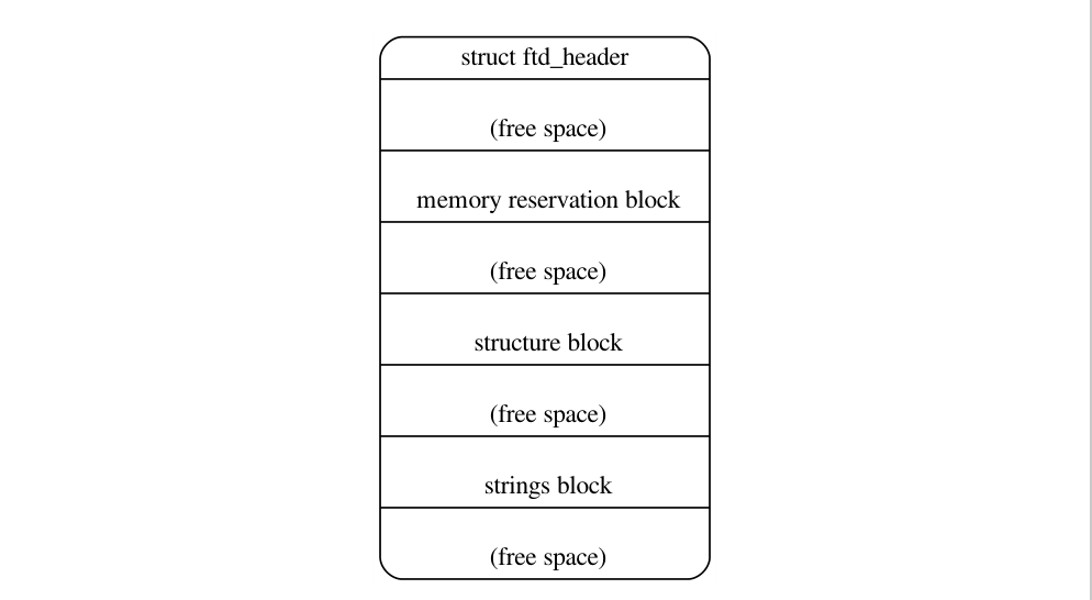struct fdt__header {uint32_t magic;uint32_t totalsize;uint32_t off_dt_struct ;uint32_t off_dt_strings ;uint32_t off_mem_rsvmap;uint32_t version;uint32_t last_comp_version;uint32_t boot_cpuid_phys;uint32_t size_dt_strings;uint32_t size_dt_struct;