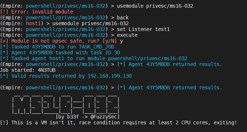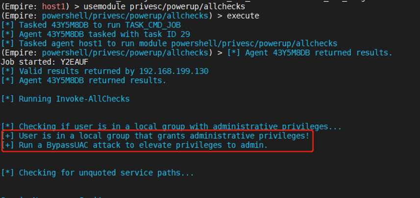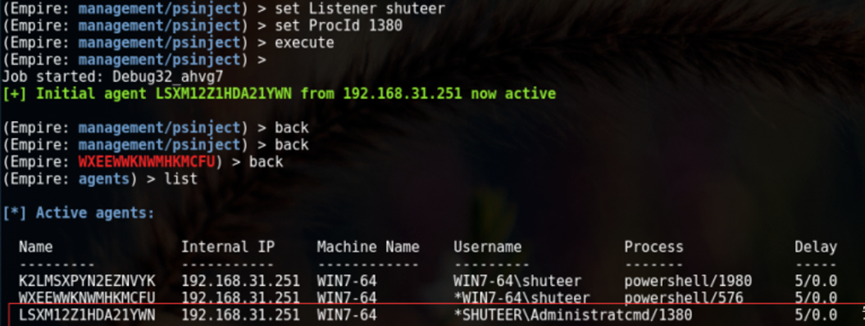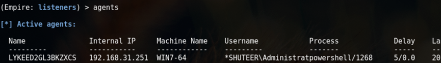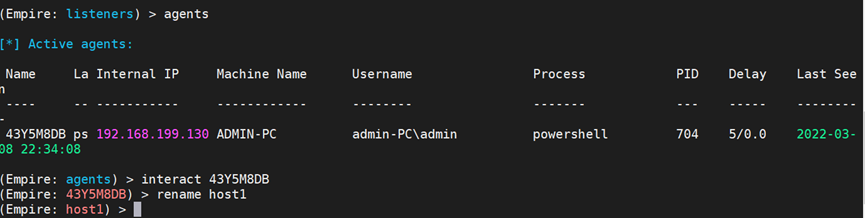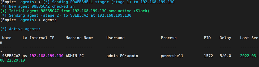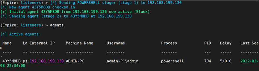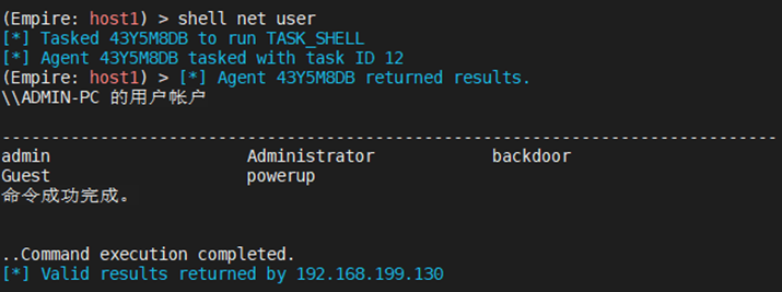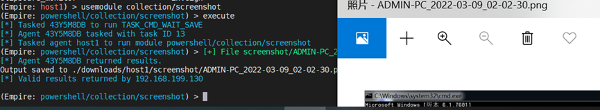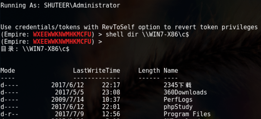 Metasploit收到Empire反弹回来的shell,如下图所示。