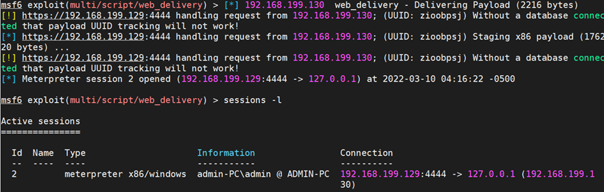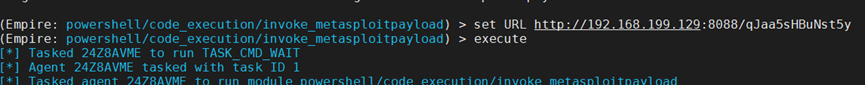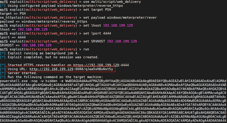 修改为前面Metasploit生成的Using URL: http://192.168.199.129:8088/qJaa5sHBuNst5y