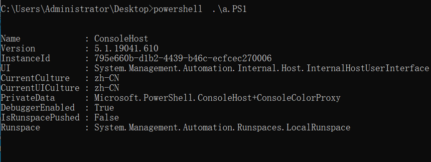 上传test.ps1到目标主机,在cmd环境下,在目标主机本地当前目录执行该脚本