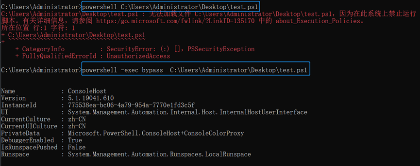 在渗透测试时,就需要采用一些方法绕过策略来执行PowerShell脚本,列举如下三种方式