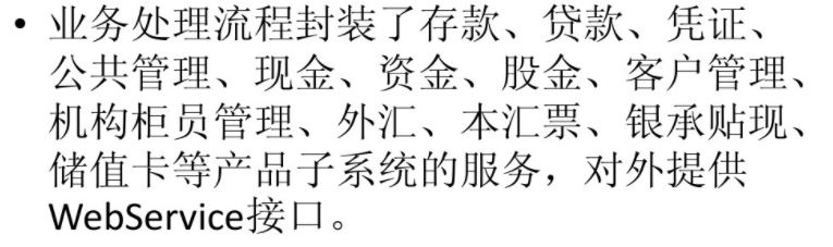 - 什么是“集中”,也就是说外围系统或者说辅助系统,不管是柜面系统也罢,ATM也罢,网银也 罢,它们的业务流程最终都要汇集到这个核心系统。就像一台计算机的所有的操作最终都要归结到CPU的指令。