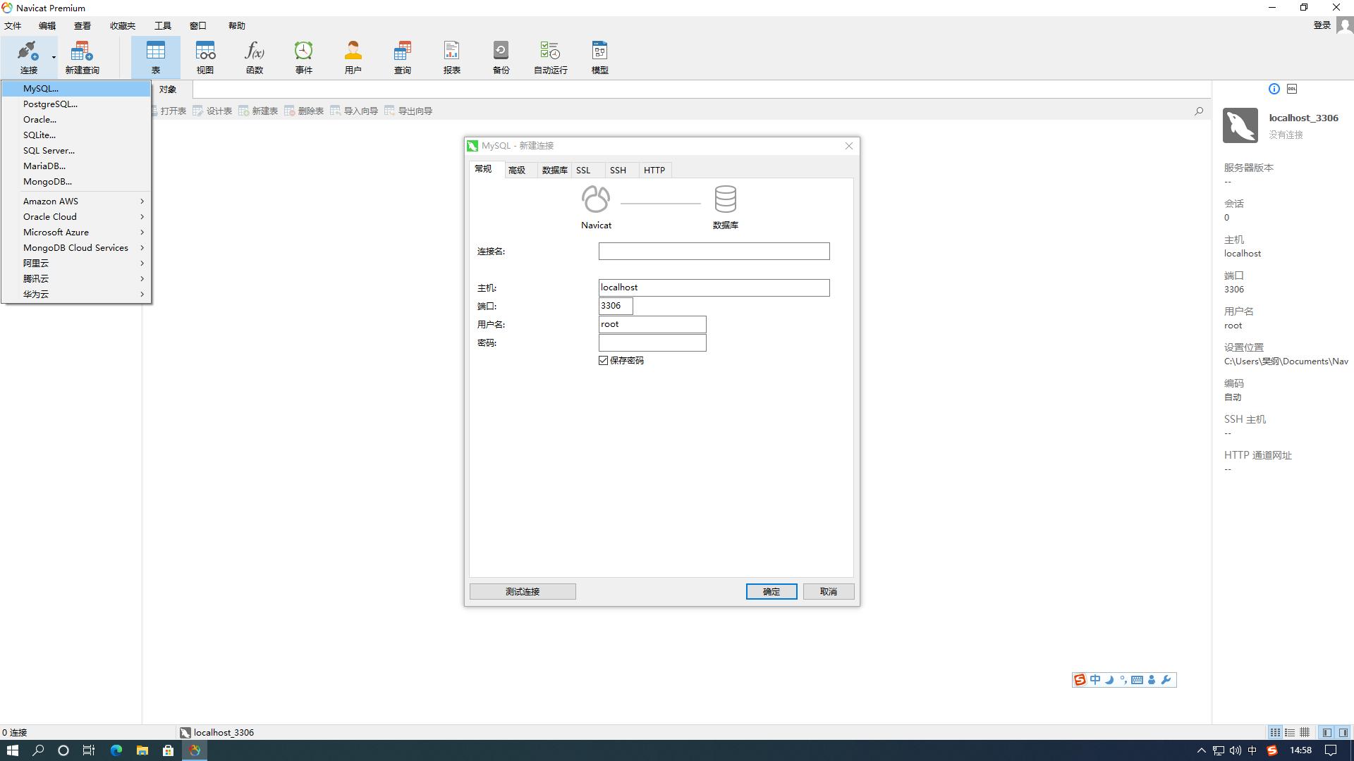 Navicat Premium 是一套数据库开发工具,让你从单一应用程序中同时连接 MySQL、MariaDB、MongoDB、SQL Server、Oracle、PostgreSQL 和 SQLite 数据库。它与 Amazon RDS、Amazon Aurora、Amazon Redshift、Microsoft Azure、Oracle Cloud、MongoDB Atlas、阿里云、腾讯云和华为云等云数据库兼容。你可以快速轻松地创建、管理和维护数据库。