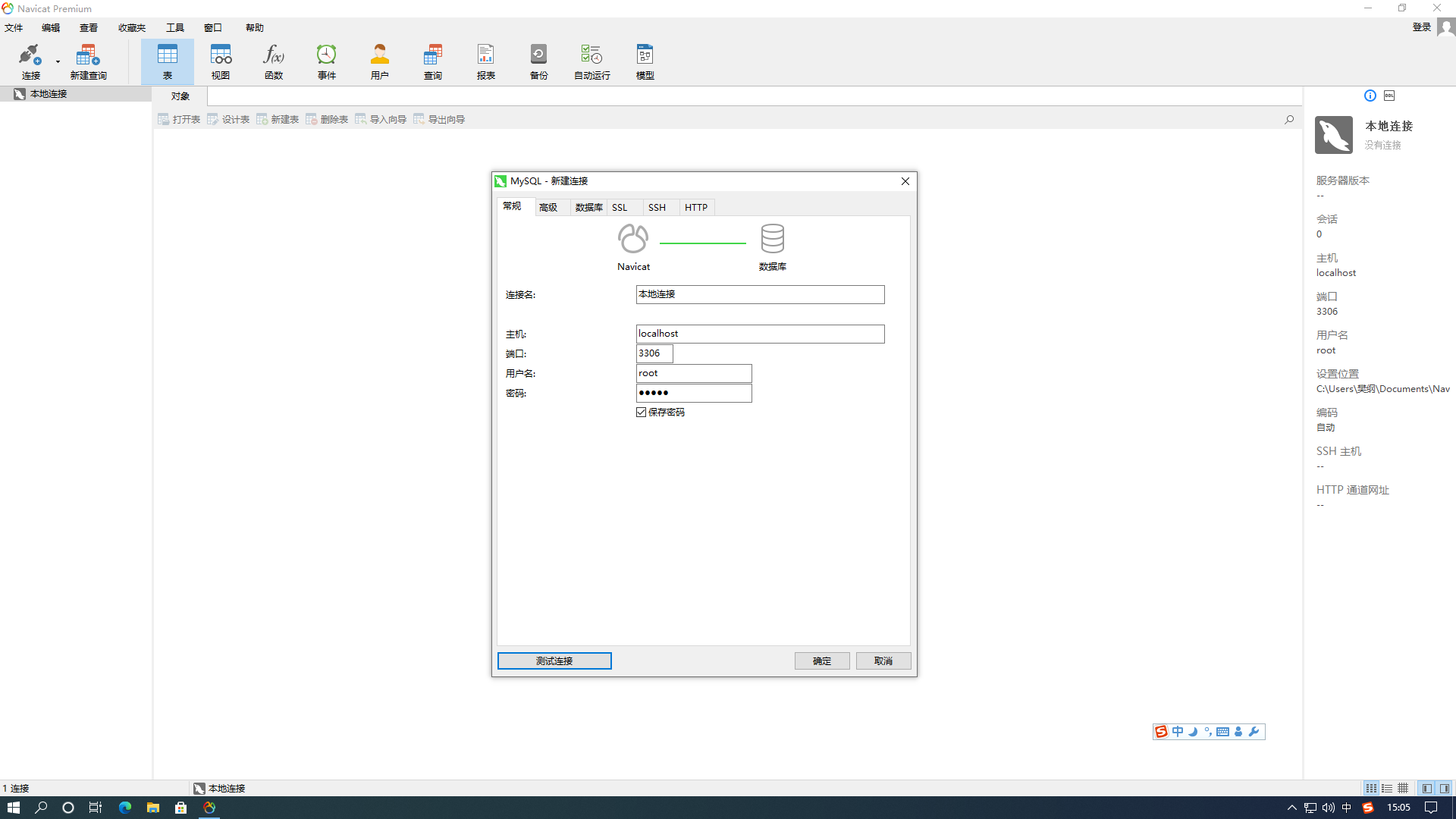 测试连接信息