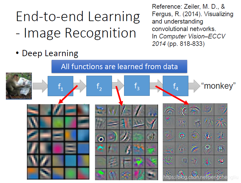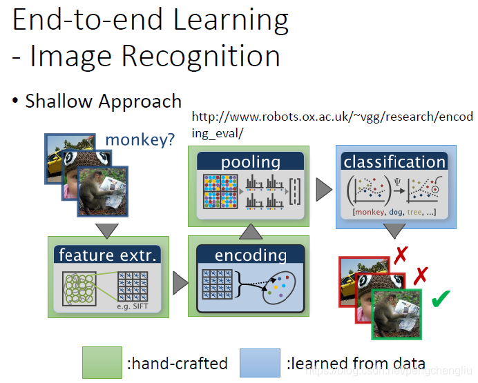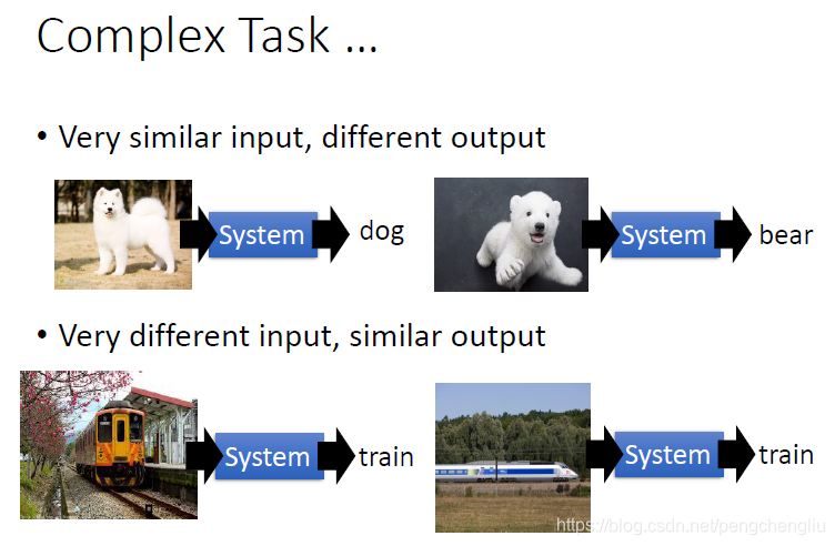 刚才是声音的例子,图像也差不多,就不多说了。过去图像处理也是很多的人工的步骤,但现在也就直接用一个很深的网络,输入是像素,输出是文字。