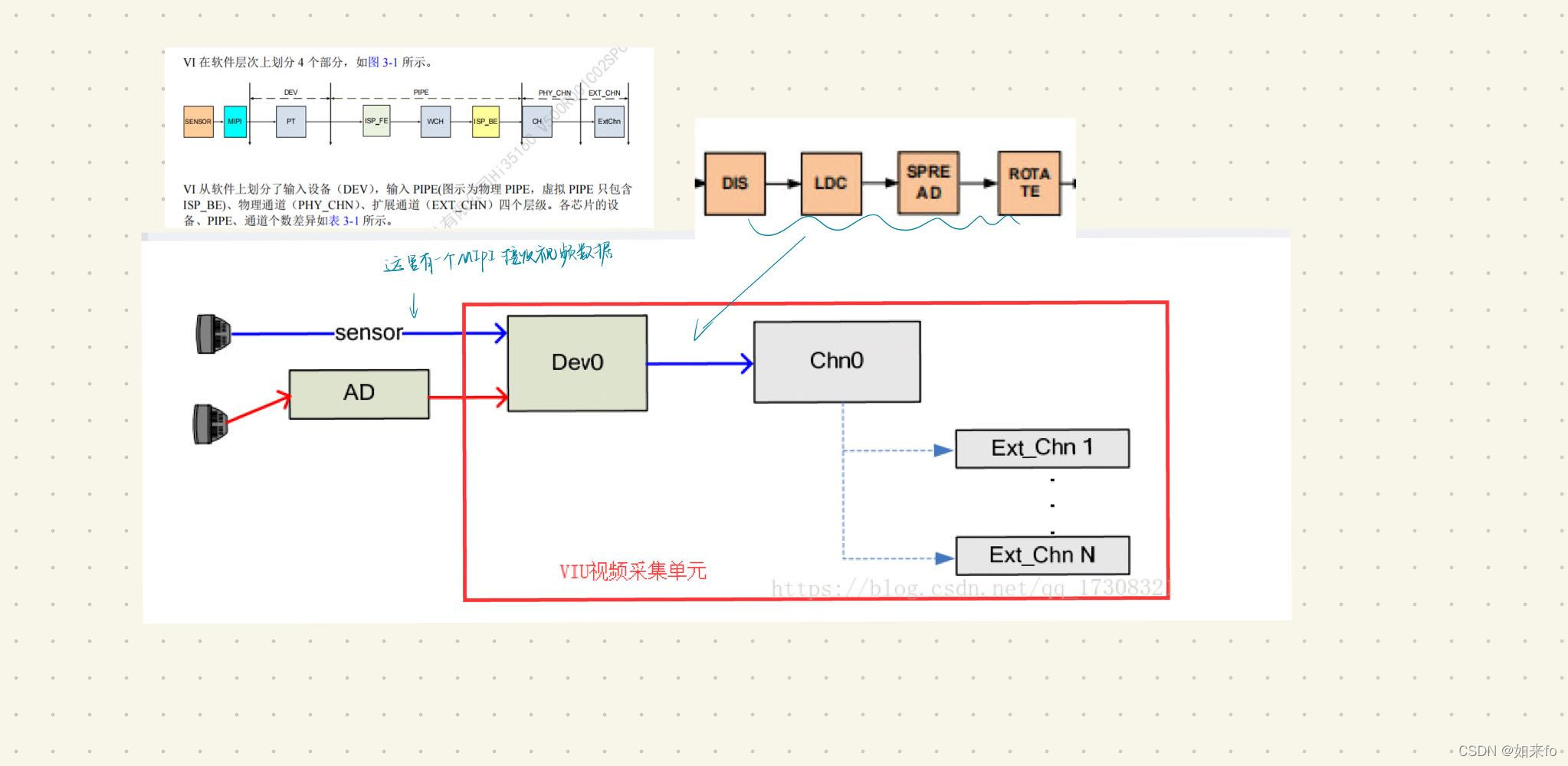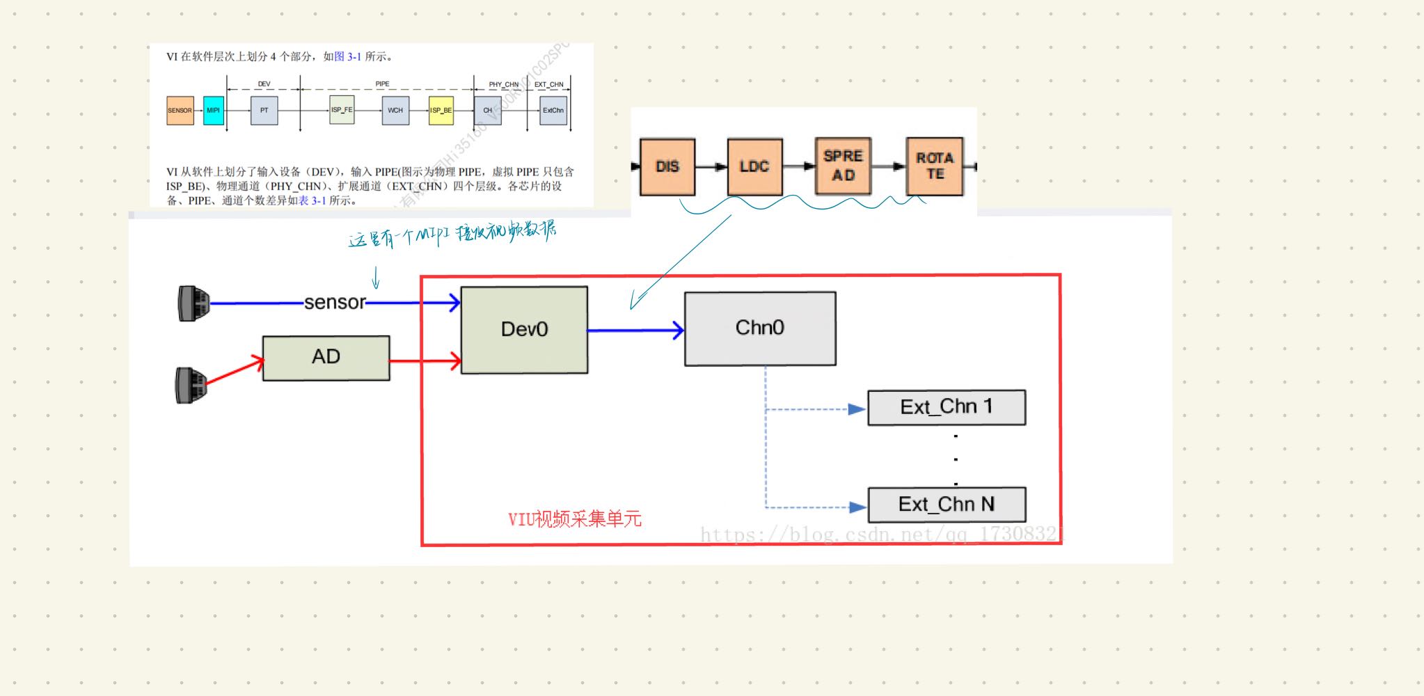 主要的解释还是看这些大牛的,我这里只是想自己整理一遍:海思3518E开发笔记2.5——海思VI(video input)模块详解_Spark!的博客-CSDN博客_海思wdr目录海思video input模块架构介绍海思video input模块功能介绍结构体说明函数调用关系流程分析step 1: mipi configurestep 2: configure sensor and ISP(include WDR mode)step 3: run isp threadstep 4 : config & start vicap devStep 5: config & start vicap chn (max 1)海思3518的sample中,创建好视频缓存池及初