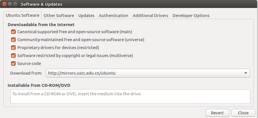桌面左侧栏 点search your computer,输入updates,点 Software & Updates,将main,universe,multiuniverse,restricted全都勾上,将Download from换成中科大的 http://mirrors.ustc.edu,cn/ubuntu