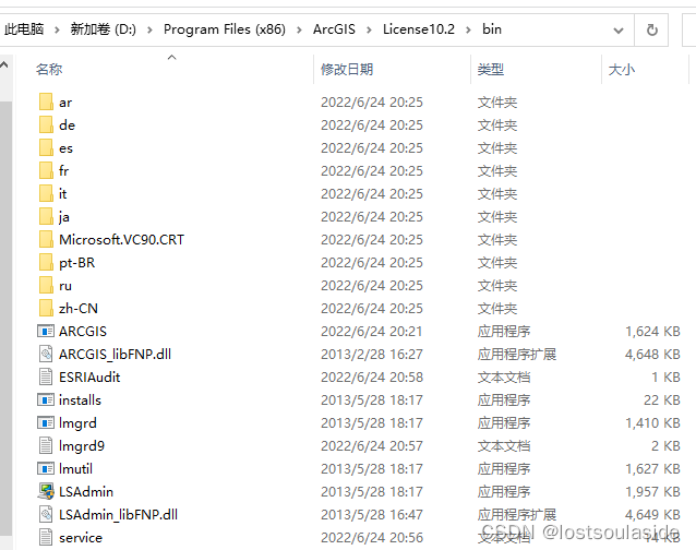 5.将破解文件中的两个文件拷到D:\Program Files (x86)\ArcGIS\License10.2\bin下