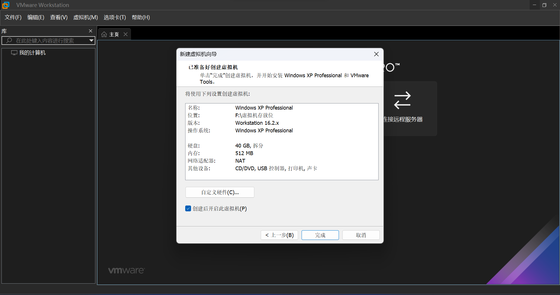第九步,VMware会开始创建虚拟机,等待创建完成(由于博主创建过快,这里就不展示图片了)